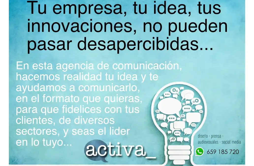 馃憠馃徎En ‘activa_’ te ayudamos a plasmar, en el formato que t煤 elijas, lo que deseas transmitir a tu p煤blico y darte a conocer, as铆 como fidelizar y ganar m谩s clientes.