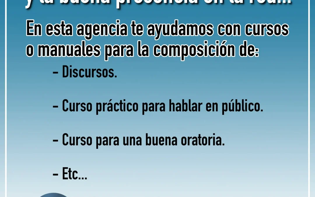 ✅En esta agencia de comunicación te preparamos para que seas un buen orador, ya sea con cursos o facilitándote los manuales.