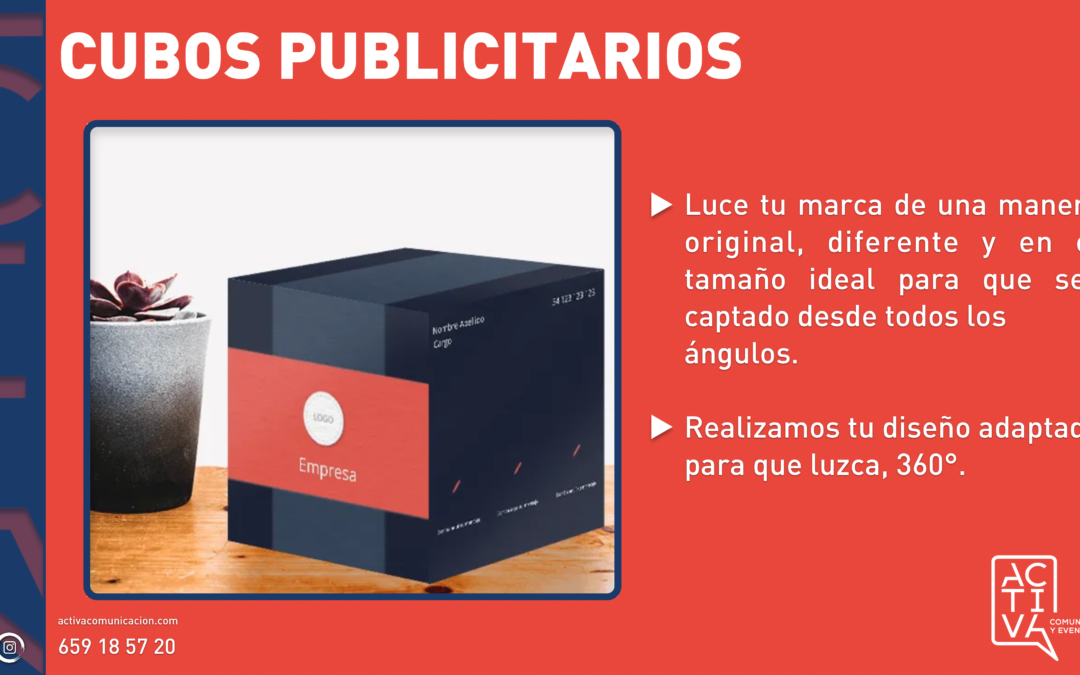 ➡️Si estás buscando un lugar original en el que plasmar tu marca a la hora de hacer una presentación, te ofrecemos estos cubos con impresión 360.