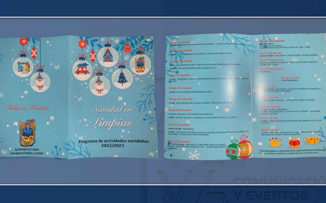 Te dejamos un ejemplo de un trabajo realizado, como el de la programación navideña para el Ayuntamiento de Limpias (Cantabria) en el que diseñamos, maquetamos e imprimimos.