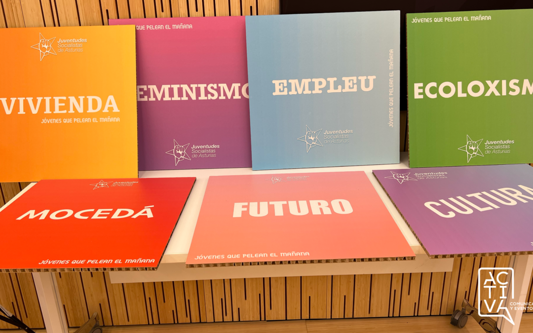 En esta agencia, diseñamos también tu imagen para plasmar en paneles de cartón rizado para que luzcas, como en en este caso, en un congreso y así afiances más el mensaje.